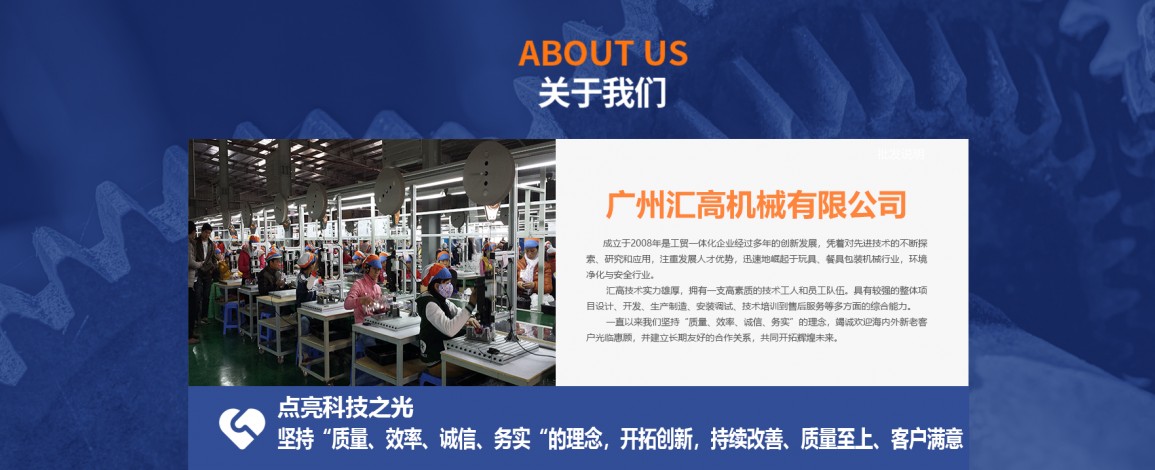 廣州匯高機(jī)械設(shè)備有限公司,成立于2008年是工貿(mào)一體化企業(yè)經(jīng)過多年的創(chuàng)新發(fā)展,憑著對(duì)先進(jìn)技術(shù)的不斷探索、研究和應(yīng)用,注重發(fā)展人才優(yōu)勢(shì),迅速地崛起于玩具、餐具包裝機(jī)械行業(yè),環(huán)境凈化與安全行業(yè)。